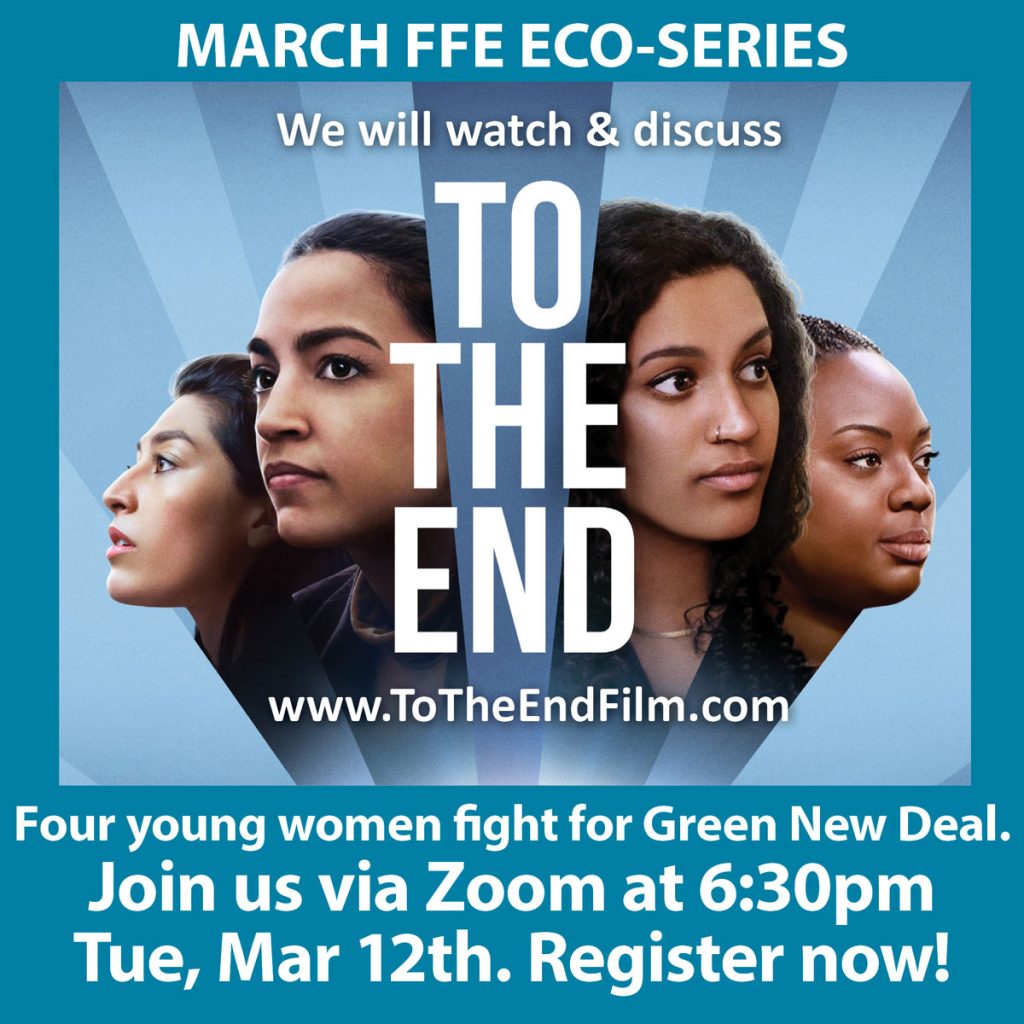 Join us on Tuesday, March 12 at 6:30 in the evening, as we view and discuss this film about four visionary young women of color who are leading the way to stop the climate crisis.