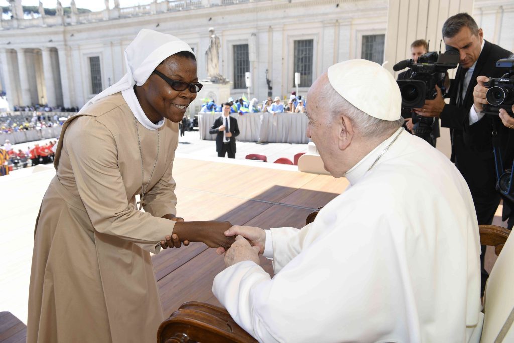 Sr. Marie Véronique Mbélé Ayissi greets Pope Francis.